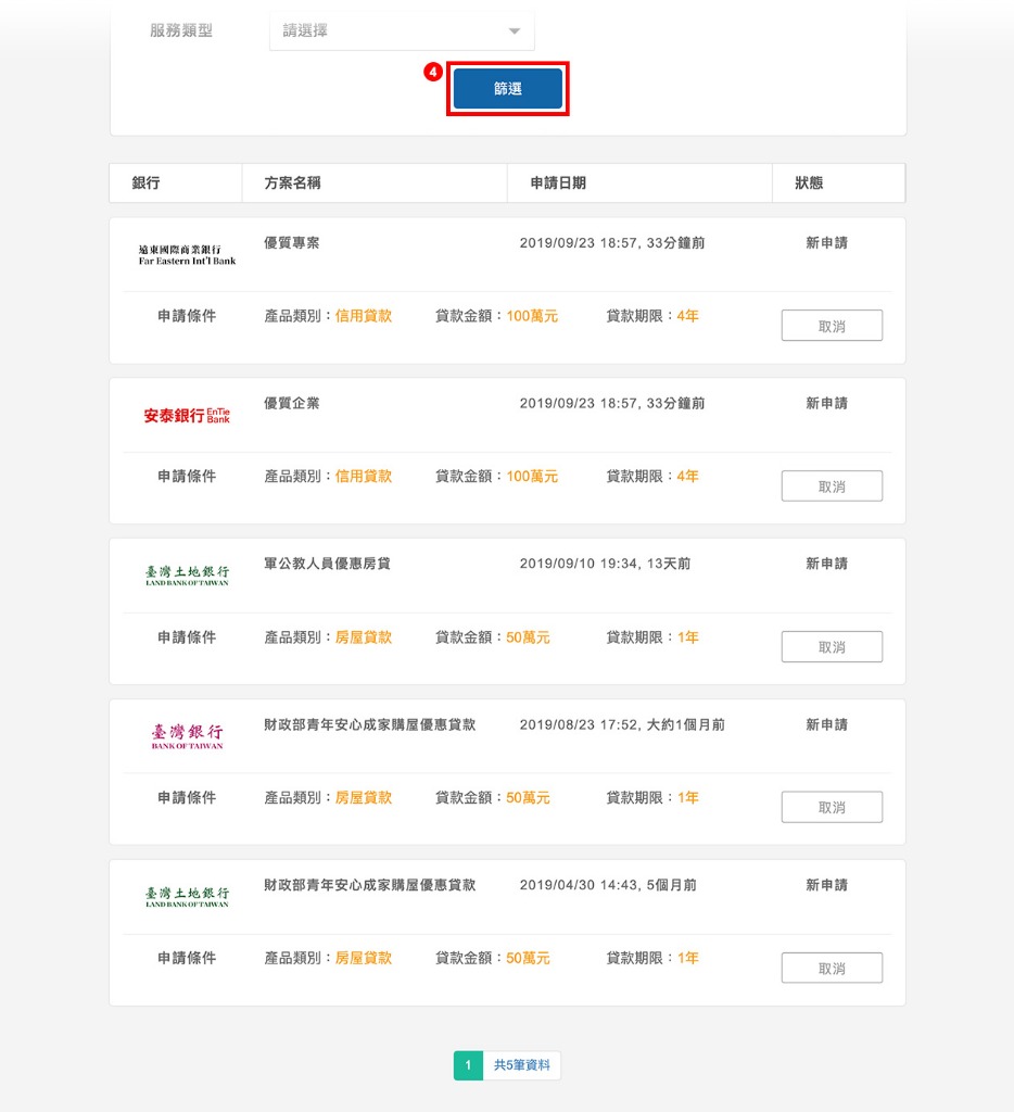 步驟 4:請點選「篩選」按鈕,篩選結果列表將顯示於下方