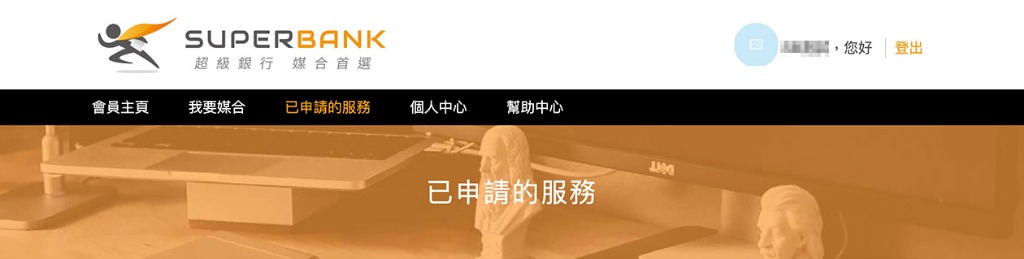 步驟 1:請登入SuperBank,於會員主頁點選「已申請的服務」按鈕